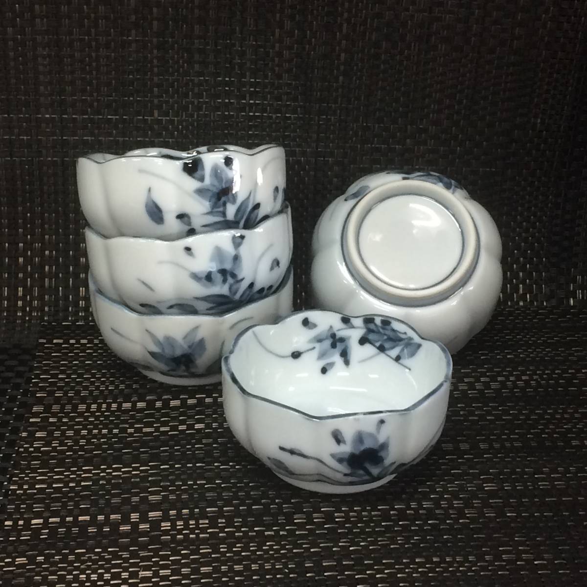 - 新品5個1組【即決】醤油小鉢 手描桔梗絵 7.6cm ミニ小鉢 猪口皿