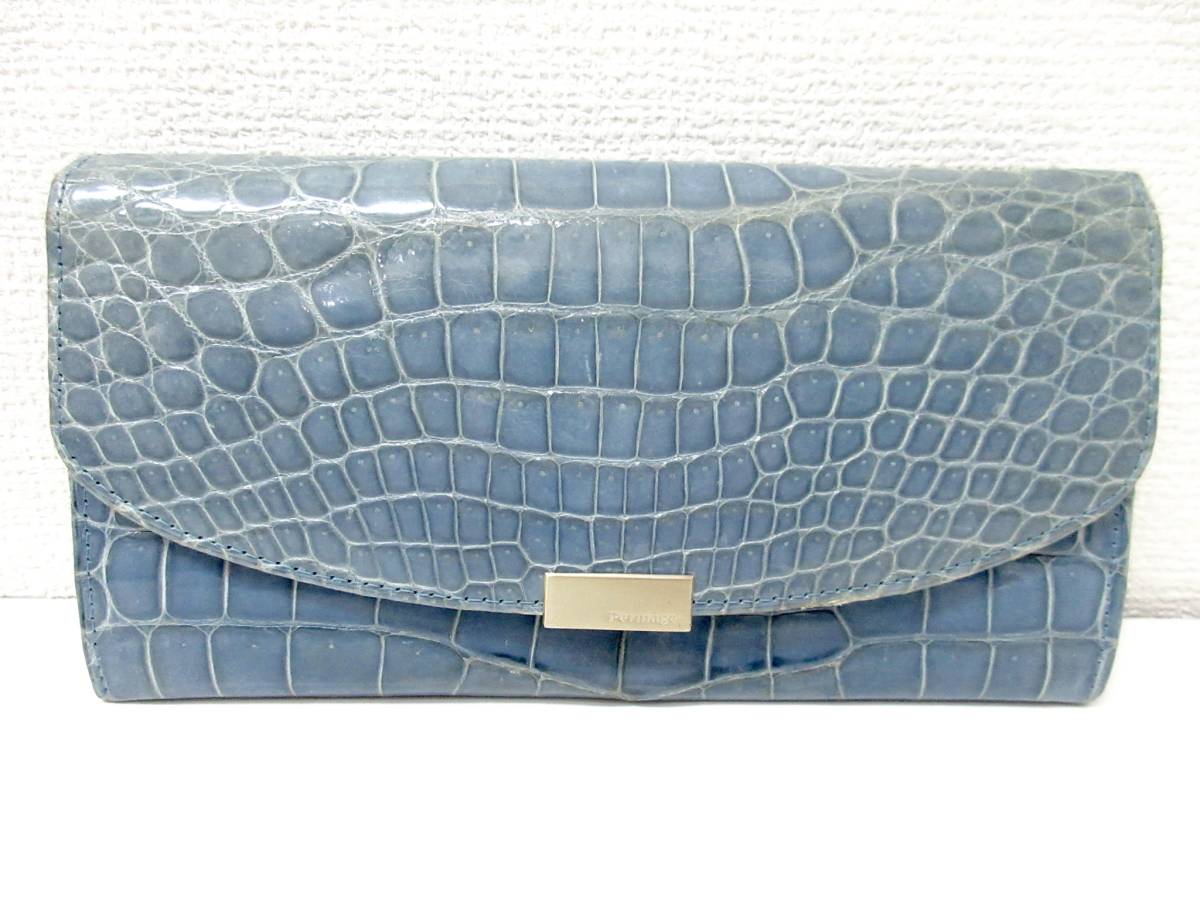 - 並品■Permage クロコ 長財布 二つ折り財布 ターコイズ 管理2008 P-6