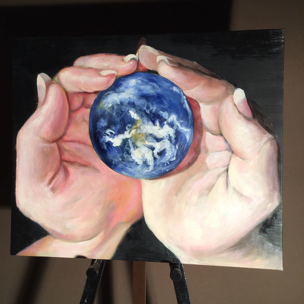 - 60×50cm 手書き油絵 私たちの地球 インテリア 置物 絵画