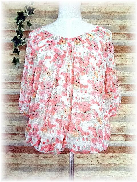- HUDON honey バルーン裾 半袖POチュニック M ホワイト地×花柄