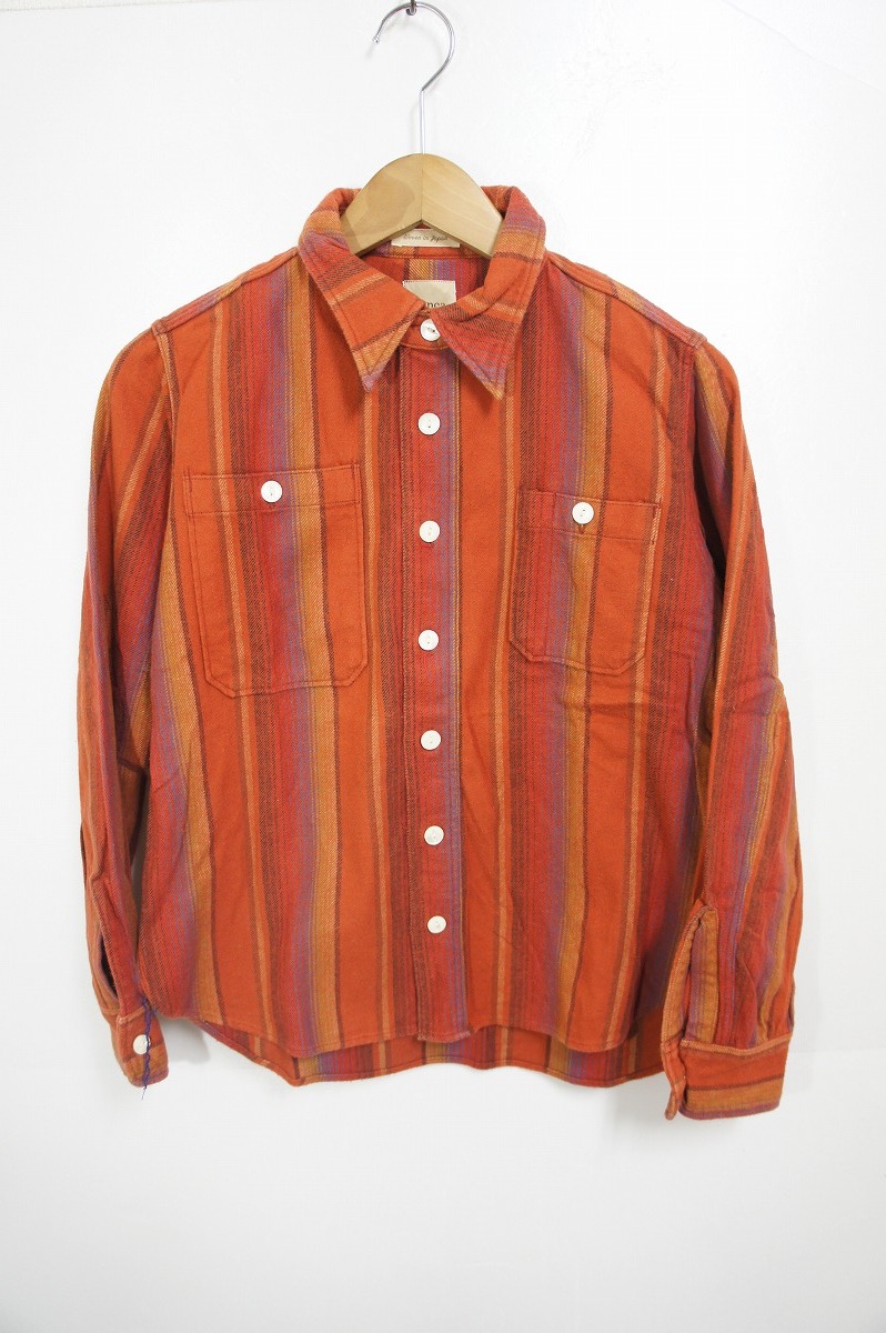 - 12AW sanca サンカ マルチ ストライプ ネル シャツ オレンジ 茶系 S12FSH03BOY サイズBOY 703K★4