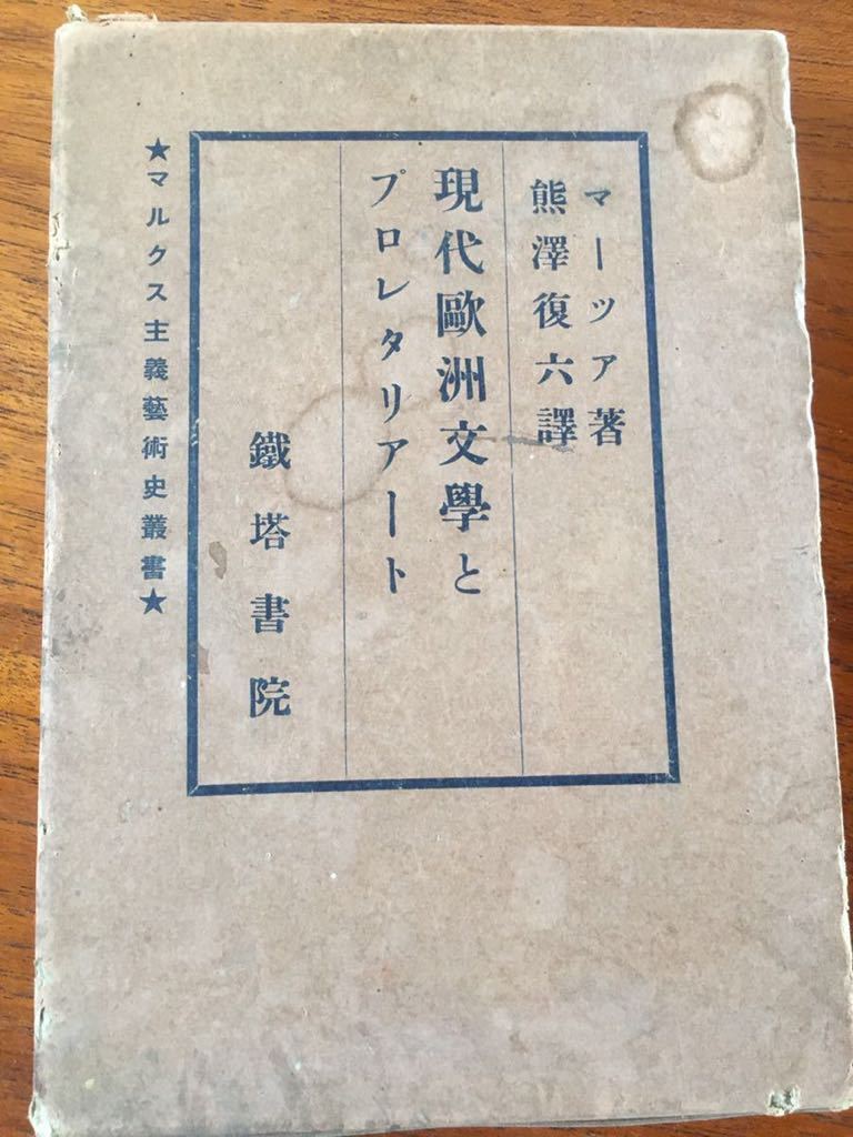 > 【古書】昭和6年発行 古本 現代欧州文学とプロレタリアート(マーツア、熊沢復六訳) 鉄塔書院; 刊行年 昭和6年 マルクス主義芸術 左翼左派