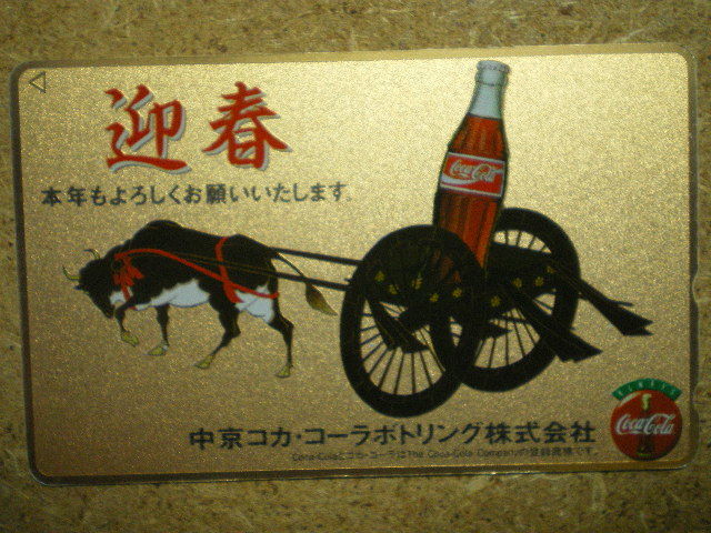 - cola・290-49555 中京コカコーラ 牛車 金箔 未使用 50度数 テレカ