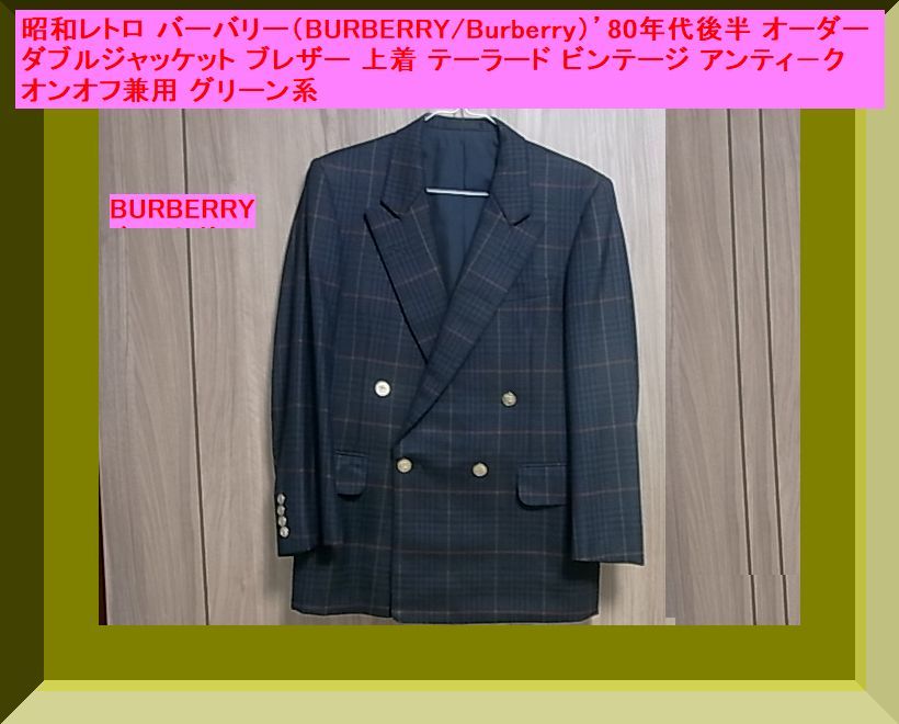 |  | 昭和レトロ バーバリー(BURBERRY/Burberry)’80年代後半 オーダー ダブルジャッケット ブレザー 上着 テーラード ビンテージ アンティ-ク オンオフ兼用 グリーン系 |  |