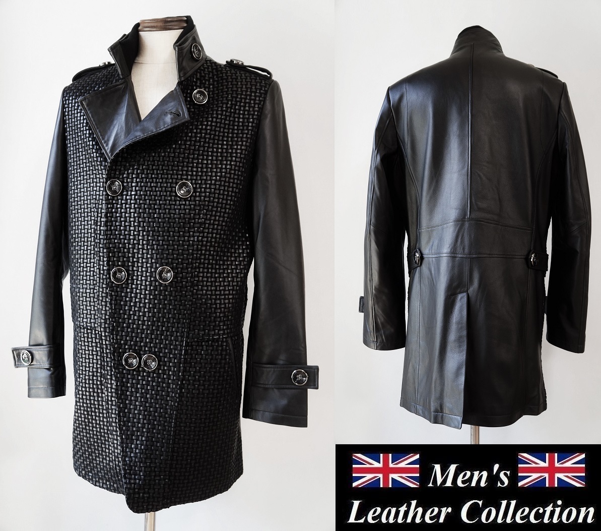 - 英国の香りが漂う☆精悍さに加え!洗練された編み込みベビーラム羊革レザーピーコート本革トレンチコート メンズ 毛皮コート ファーコート