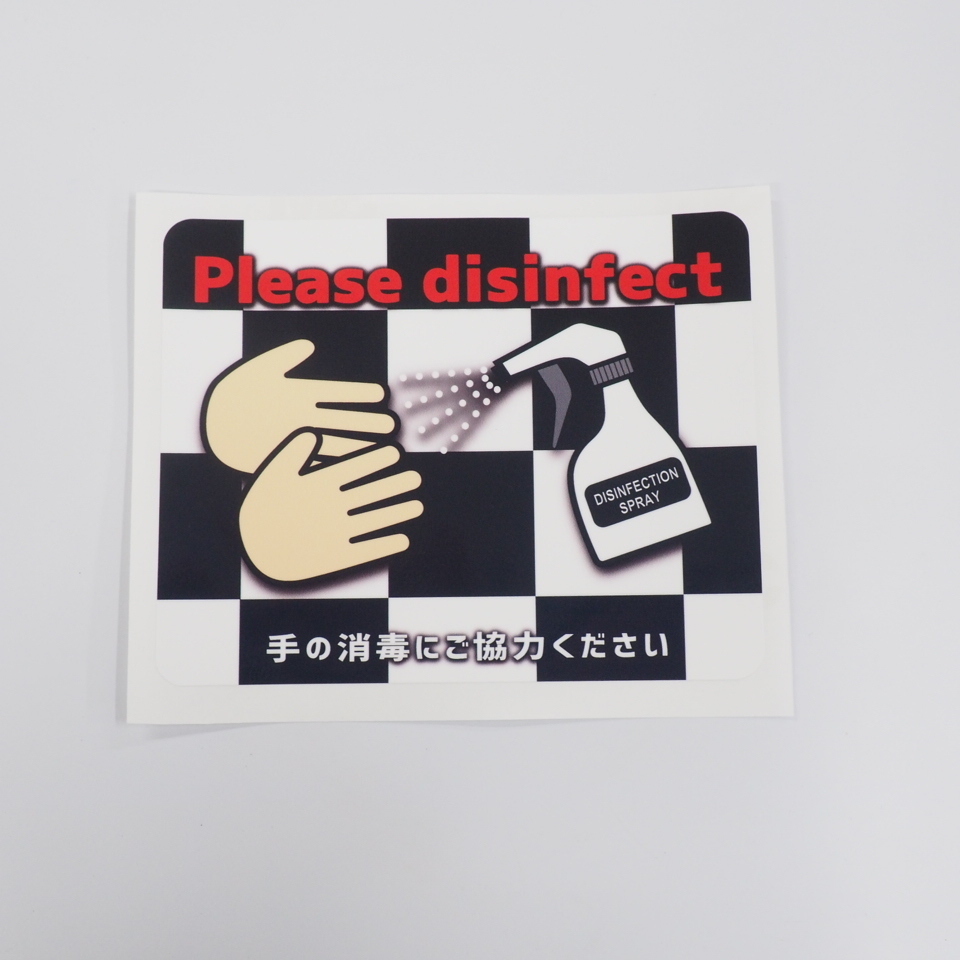 - コロナ対策 消毒お願い ウイルス対策 感染予防 ステッカー 店舗 コロナウイルス 白黒チェック 15cm 1枚 出入り口に