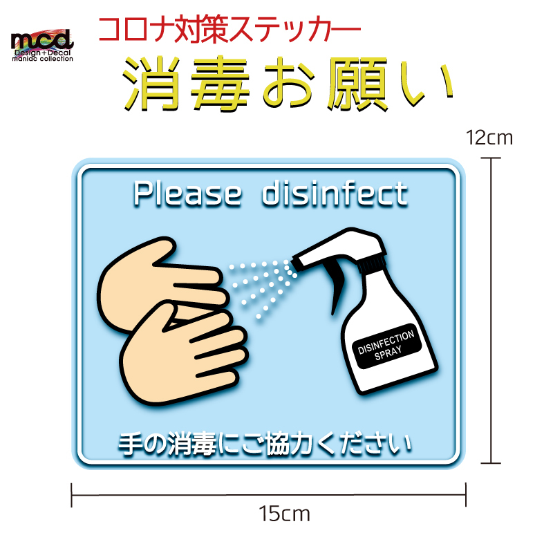 - コロナ対策 消毒お願い ウイルス対策 感染予防 ステッカー 店舗 コロナウイルス 水色 15cm 1枚 出入り口に