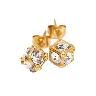 - ★人気★変色無★手入れ不要★肌に優しい★アレルギー&温泉&海水浴OK★ステンレスピアス★イエローゴールドキューブ型&スワロフスキー★