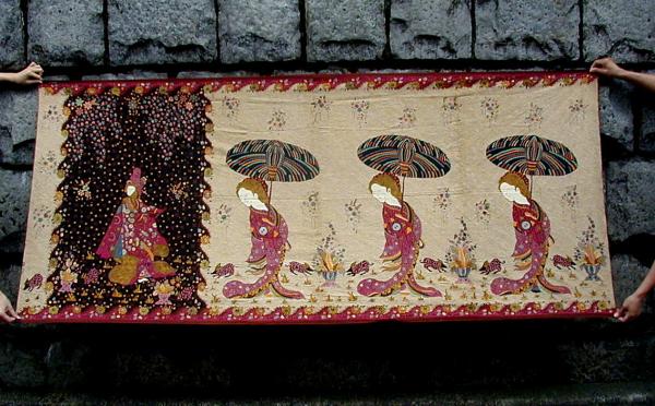 - インドネシア・チレボンの手描きオビン・バティック布(おしん)