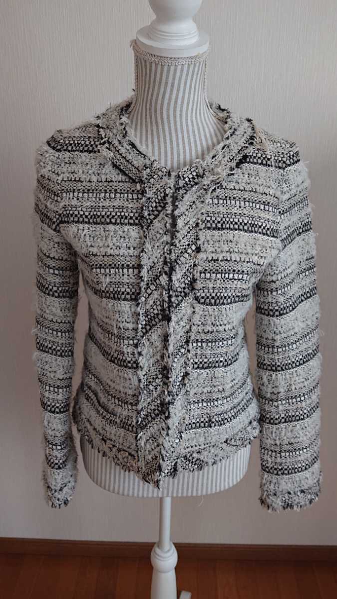 > ★ROSSO★白×黒×シルバーカラーのツイ―ドジャケット★毛足長め★F★日本製★(株)ア―バンリサーチ★フォーマルにも★