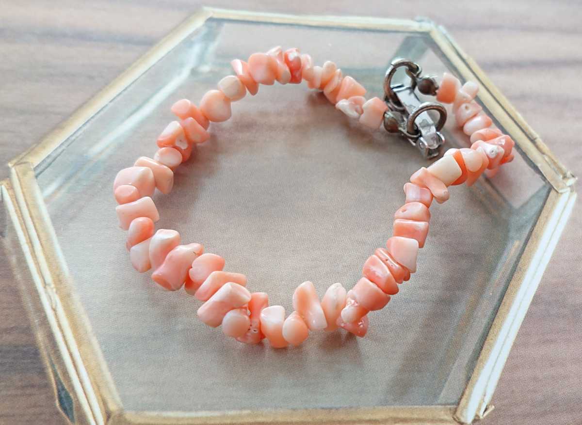 - □訳あり□サーモンピンク×白MlXビーズのブレスレット□
