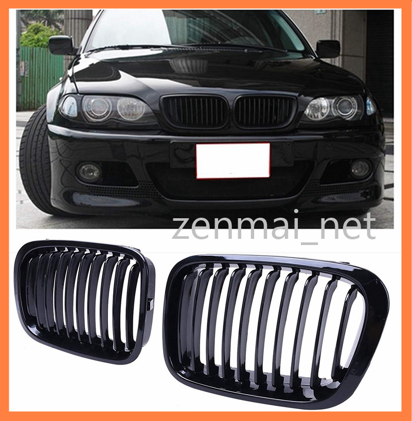 > D112 BMW E46 1998-2001 4ドア 光沢グロスブラックフィングリル 純正互換社外品