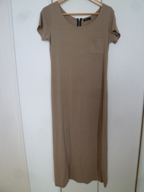 - &byP&D/アンドバイピンキー&ダイアン△ベージュ系背中ジップアップロングTシャツワンピース38/マキシ丈サンエー半袖△OP123