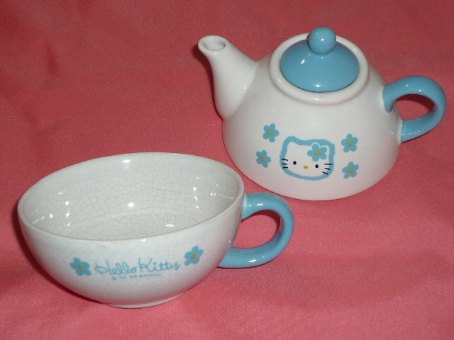 > 激レア!レトロ 1998年 サンリオ ハローキティ 陶器製 カップ&ポット (ブルー)