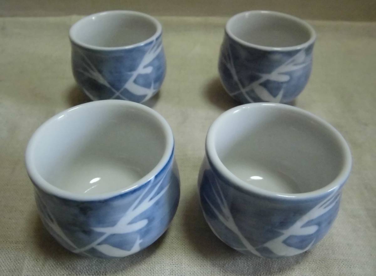 - ぐい呑み 染付 お猪口 4客 盃 杯 酒器 工芸品 陶器 レトロ アンティーク