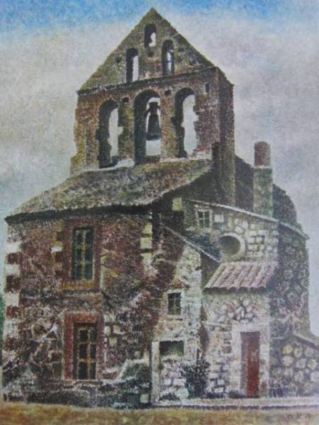 - 岡 鹿之助、小村の礼拝堂、希少な額装用画集より、新品高級額装付、状態良好、送料無料、y321