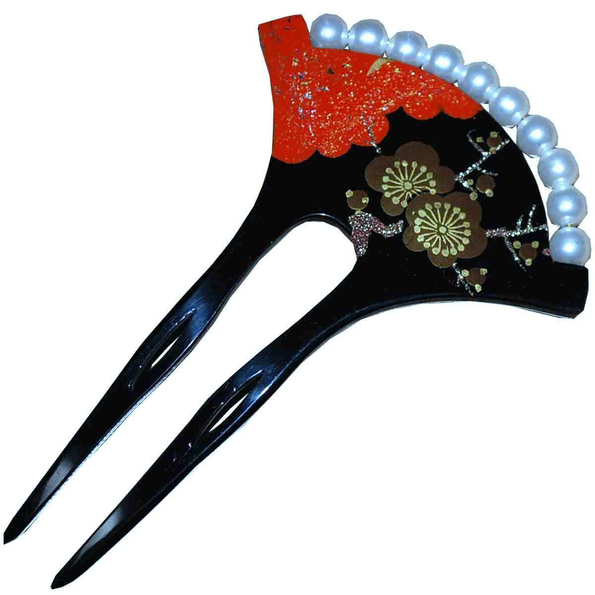- 日本製 簪 かんざし 二本差し パール 付き 髪飾り ヘアアクセサリー 成人式 結婚式 留袖 振袖 フォーマル用 黒 23459-23468