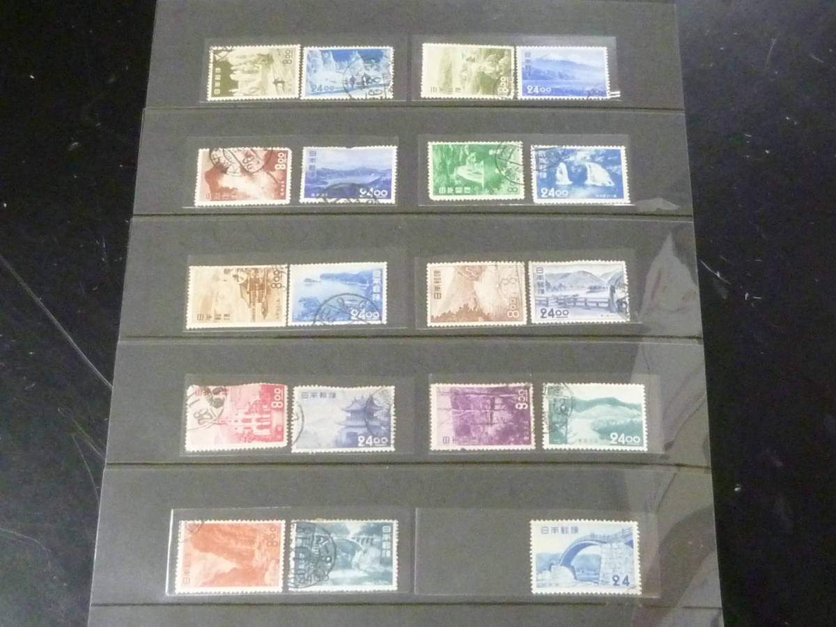 > 21EA P 日本切手 №B 1951-53年 観光地百選 記199-218の内 計19種 使用済・うすみ、目打ちカケ等有