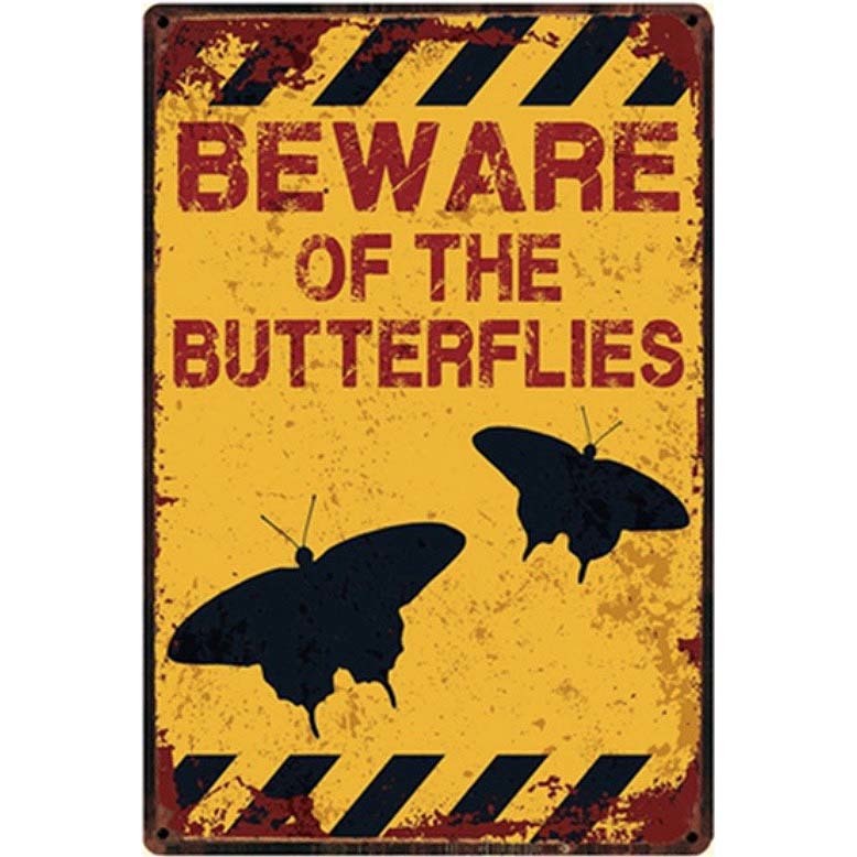 > A628 メタル サイン ブリキ 看板 金属 製 プレート アンティーク 風 警告 注意 危険 動物 鳥 虫 ペット 蝶 蝶々 蛾【2875