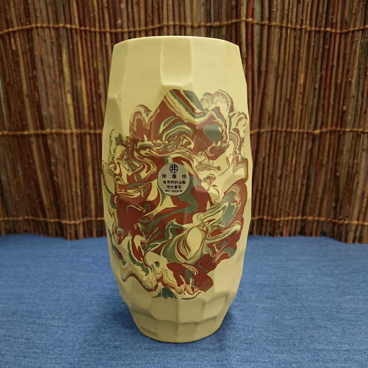 - 【未使用・デッドストック】2)常滑 伸康焼 花瓶 (花生 花器 朱泥 柄流し込製法 インテリア 飾り)当時物 昭和レトロ ※※説明ご参照下さい