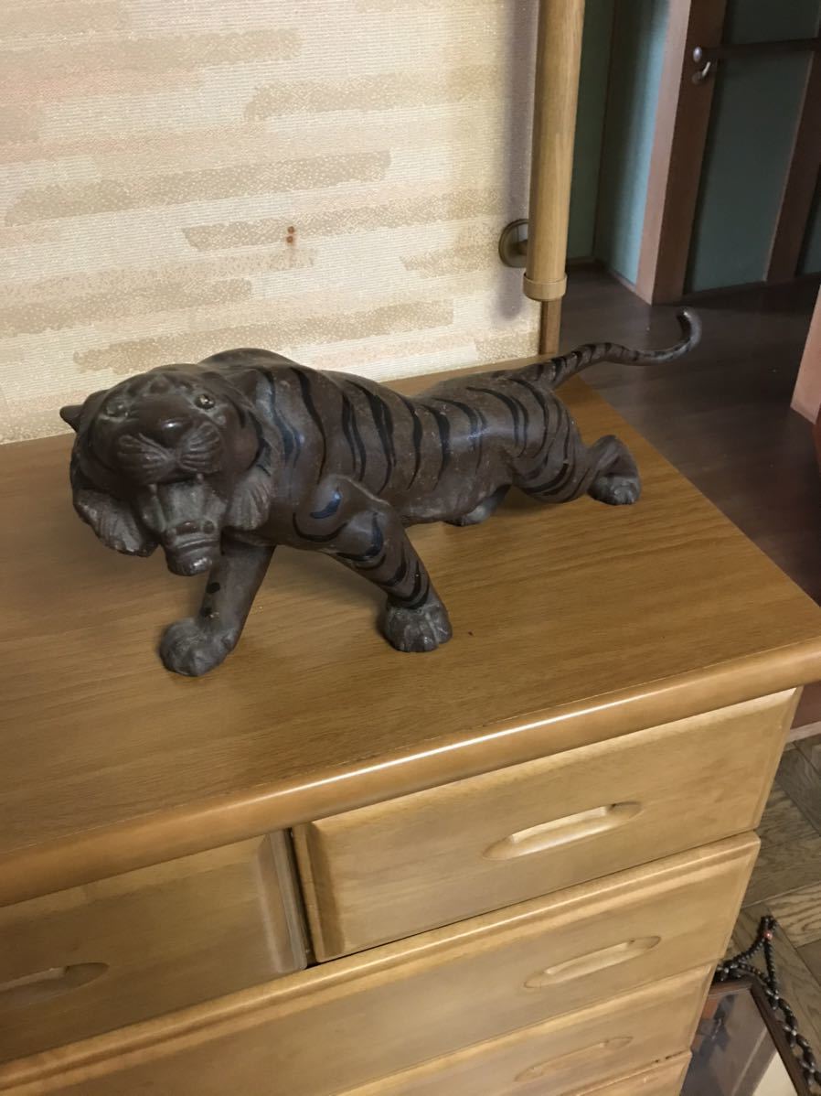 - 骨董品 虎 タイガー 置物 アンティーク 鋳物製 動物フィギュア 中古品