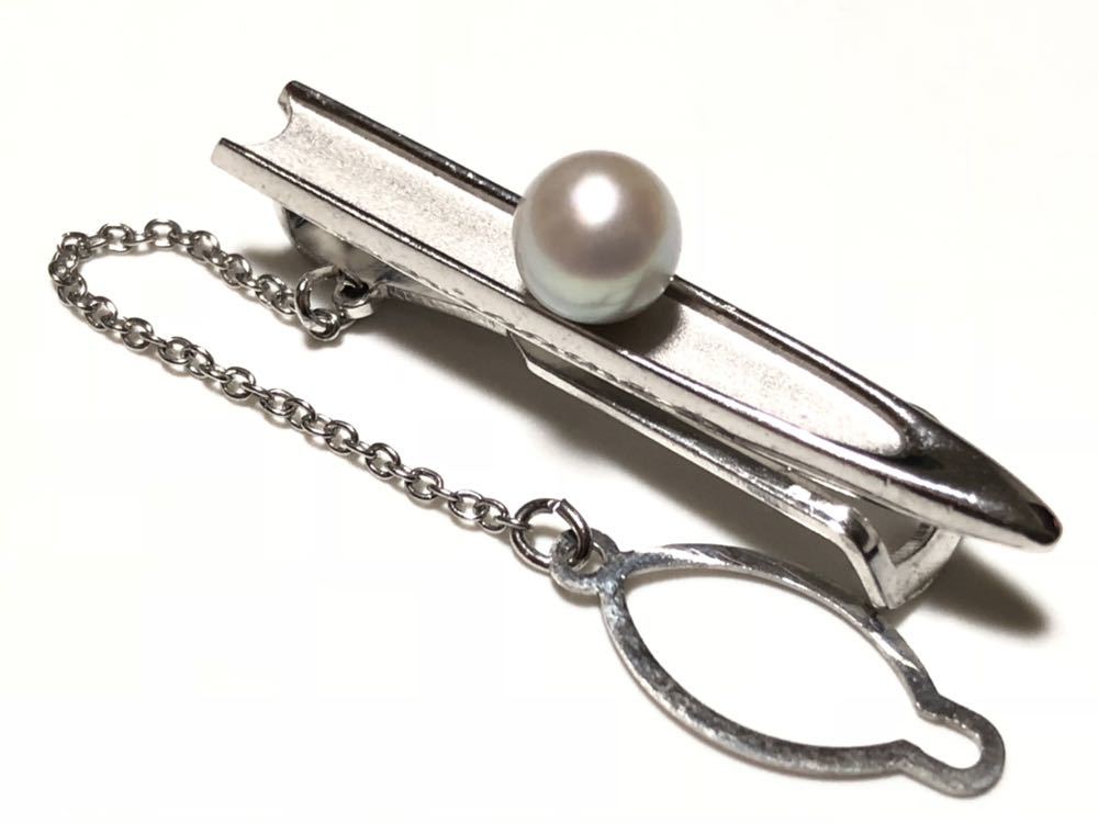- 本真珠 3.8g 6.5㎜玉 デザイン タイピン【検/パール】