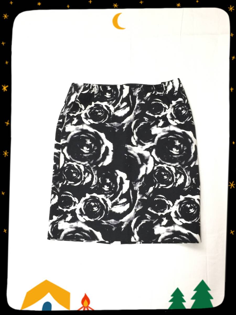 > アドーア ADORE タイト スカート サイズ36 38 40 M 白黒 ブラック ホワイト レディース 花柄 ボトムス 薔薇プリント バラ ローズ スリット