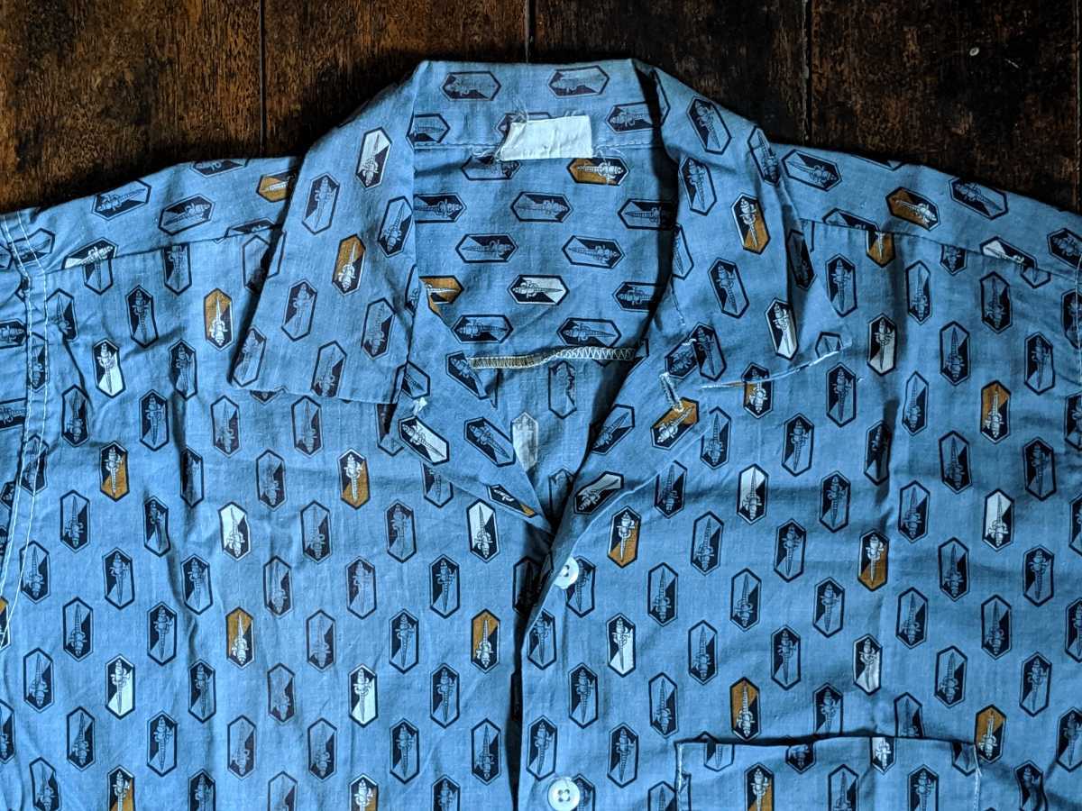 > ツルギ ★ 50 s 剣 柄 ボックス 半袖 シャツ グレー ビンテージ ドレス ワーク クレリック ハワイアン ボーリング ミリタリー ボタンダウン