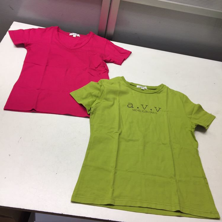> 送料無料★a.v.v MICHEL KLEIN PARIS アーベーベー★半袖Tシャツ 2枚セット★サイズ42 L★黄緑 ピンズ#30609sj66