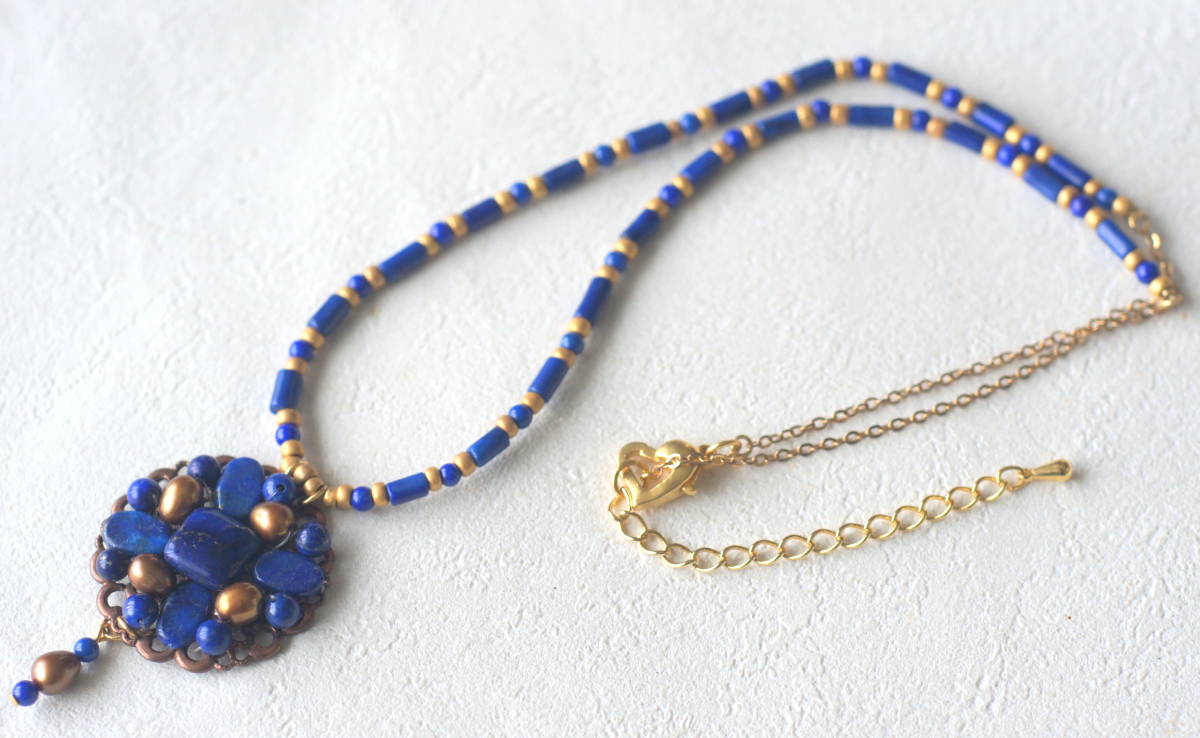 - 天然石ラピスラズリ使用の高貴なネックレス エスニック 王者のネックレス