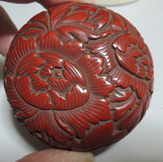 清代 堆朱 《牧丹花香合》 茶道具 唐物