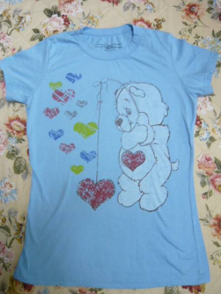 - 匿名配送 送料無料 未使用 肌触りが良い ケアベア Tシャツ 半袖 ブルー クラシック 綿100 レトロ ハート レディース 海外製 水色 タイ製