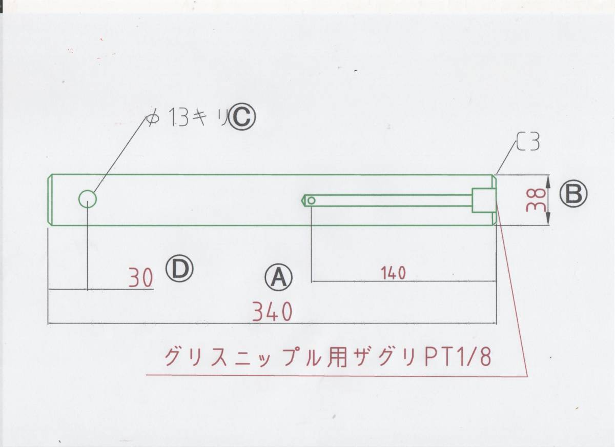 - NO590 Φ38用 全長340mm グリス穴付きバケットピン 1本