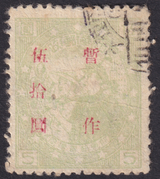 - 中国切手 解放区 旅大区 旅大郵政 1949年9月 第一次加刷暫作改値票 50円/5円 使用済 Yang:AD60 SC:2L64 0192