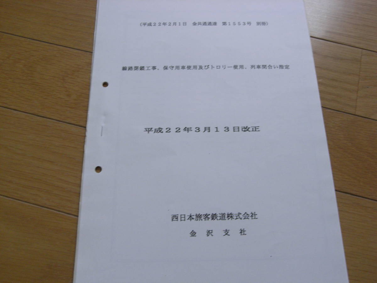 - 線路閉鎖工事、保守用車使用及びトロリー使用、列車間合い指定 平成22年3月13日改正 西日本旅客鉄道株式会社金沢支社