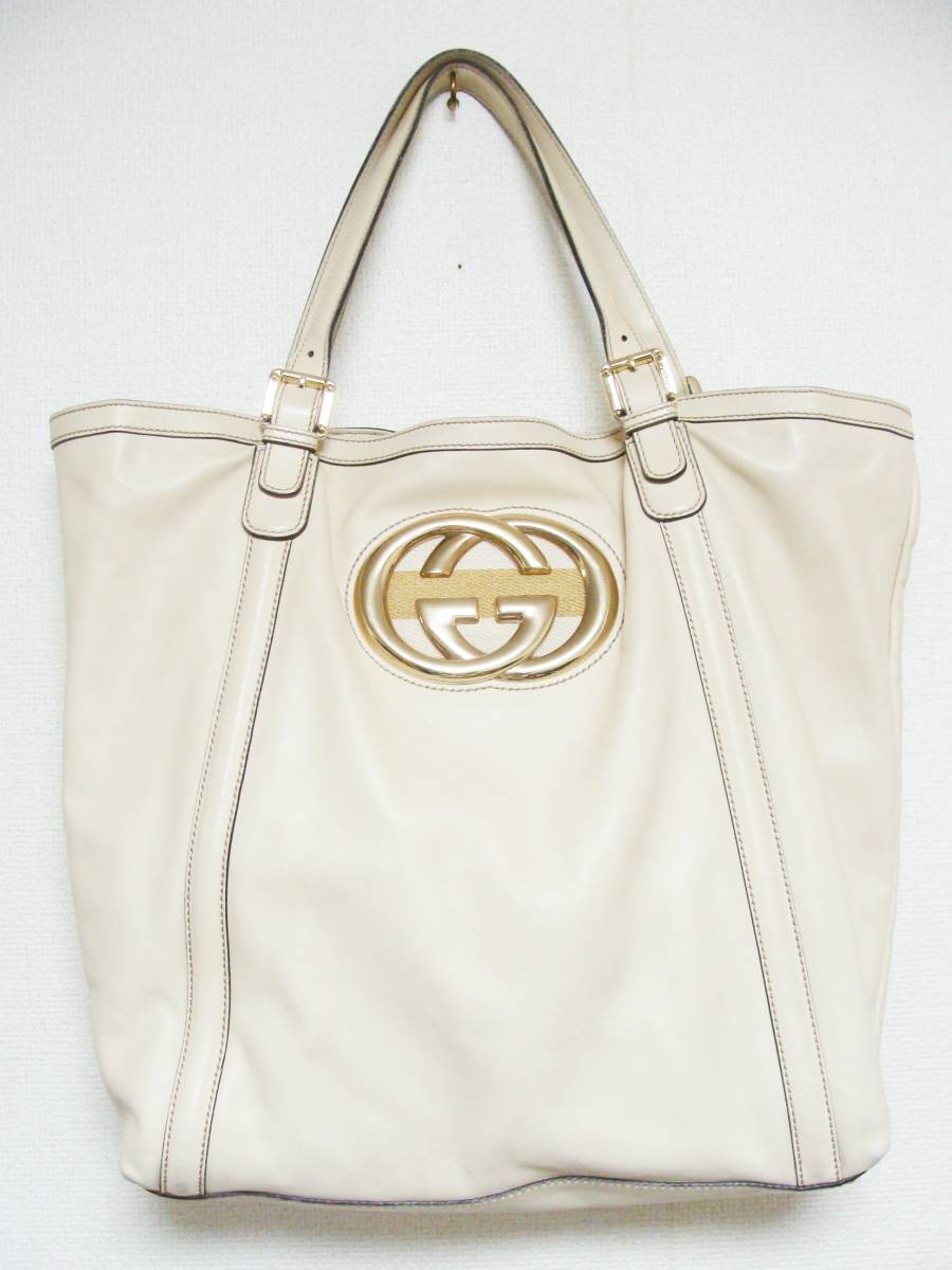 > GUCCI グッチ ◇ インターロッキング GG ロゴ マーク シェリー 金具 レザー 皮 革 ハンド トート バッグ 鞄