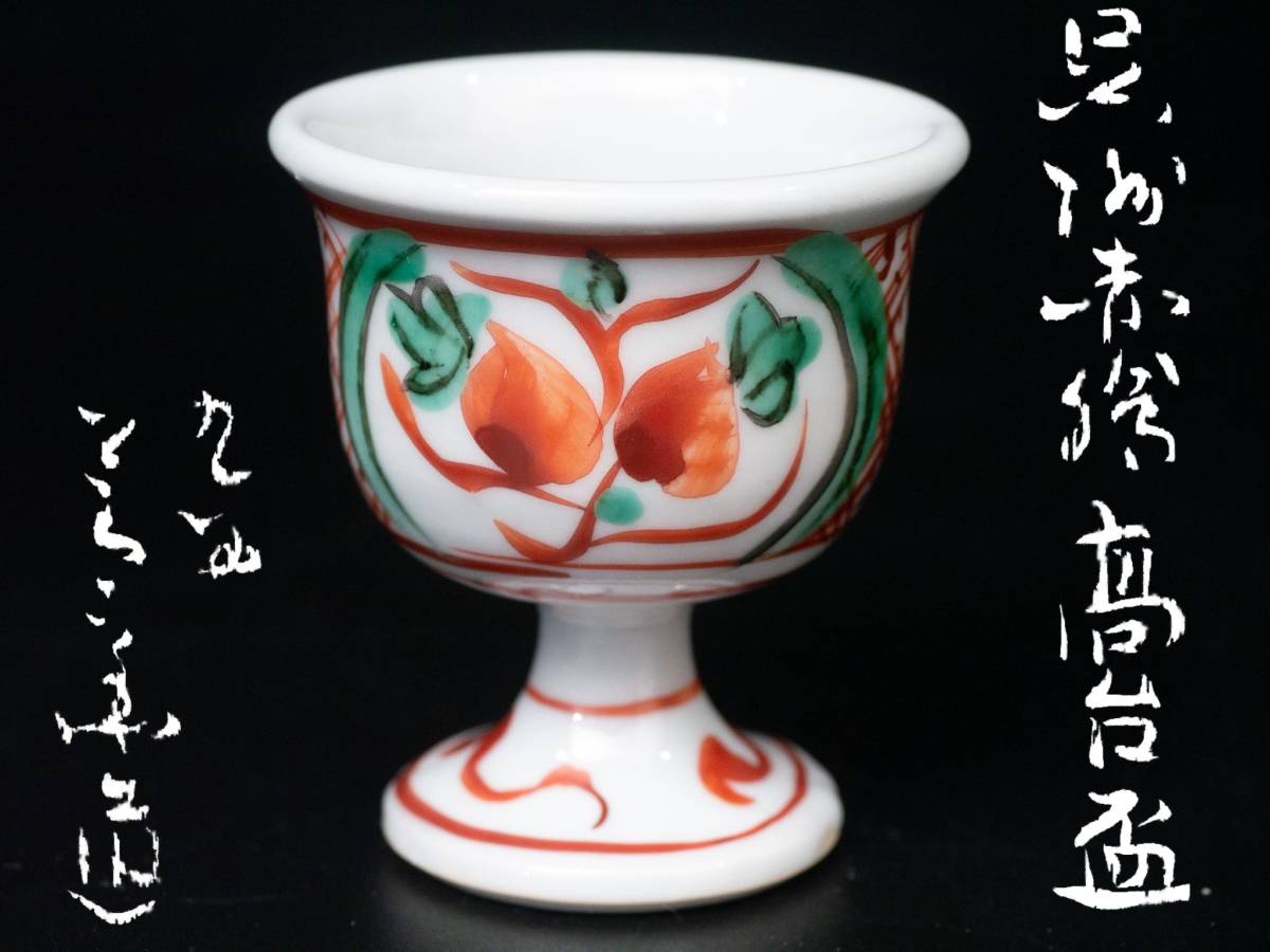 - 【値下げ交渉有り】 名工 三代 須田菁華 造 九谷 呉須赤絵 足付 高台盃 ぐい呑 共箱 酒器