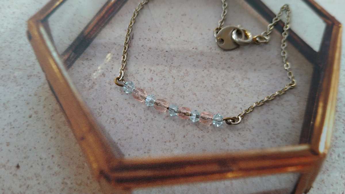 - □クリア水色&ピンクビーズ・チェーンブレスレット□