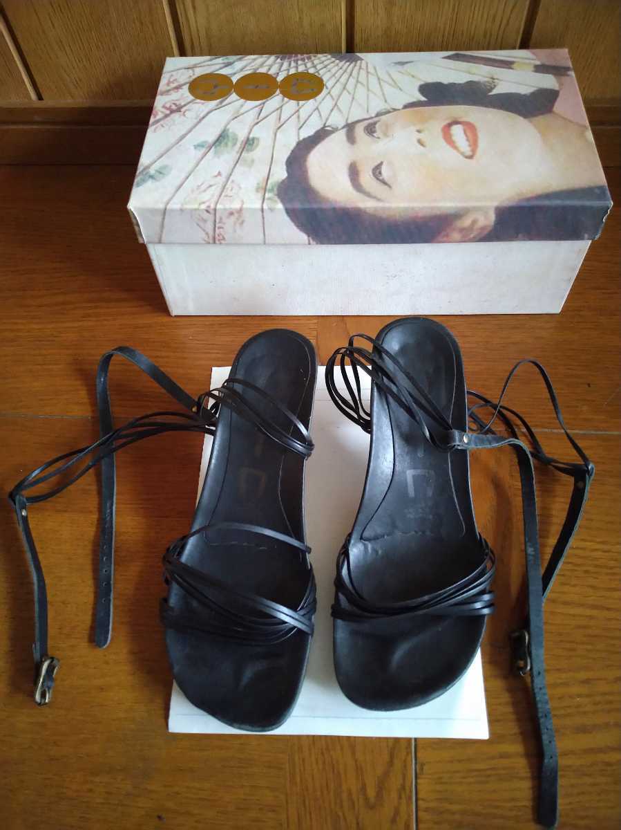 - 中古 YIn サンダル レースアップ ストラップ 本革 ブラック 37 イタリア製 24-24.5cm レディース 靴