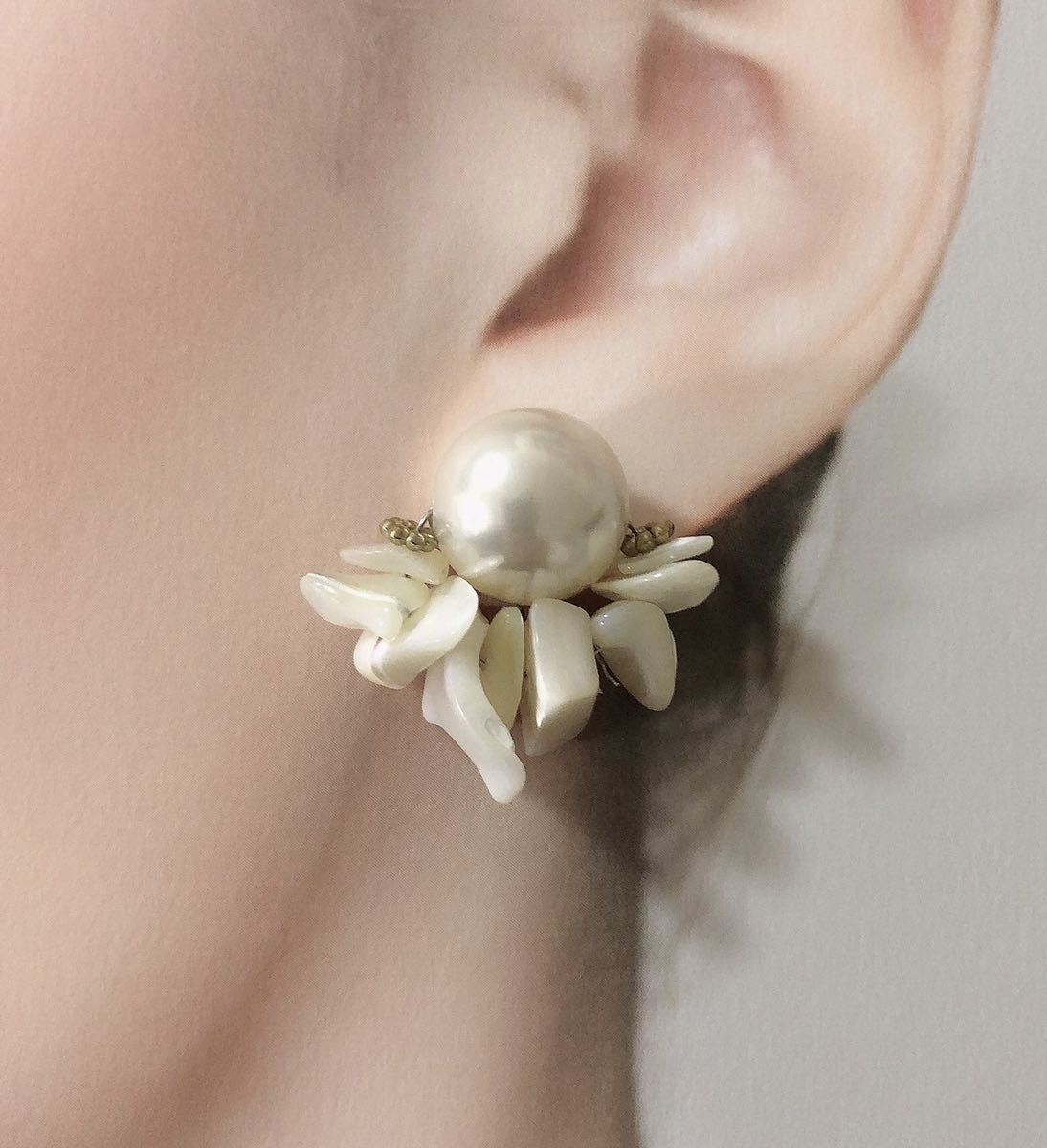 - TH23 マザーオブパールさざれ 白蝶貝さざれピアス パールホワイト 青 白 真珠母貝 さざれ石 ヴィンテージ 風