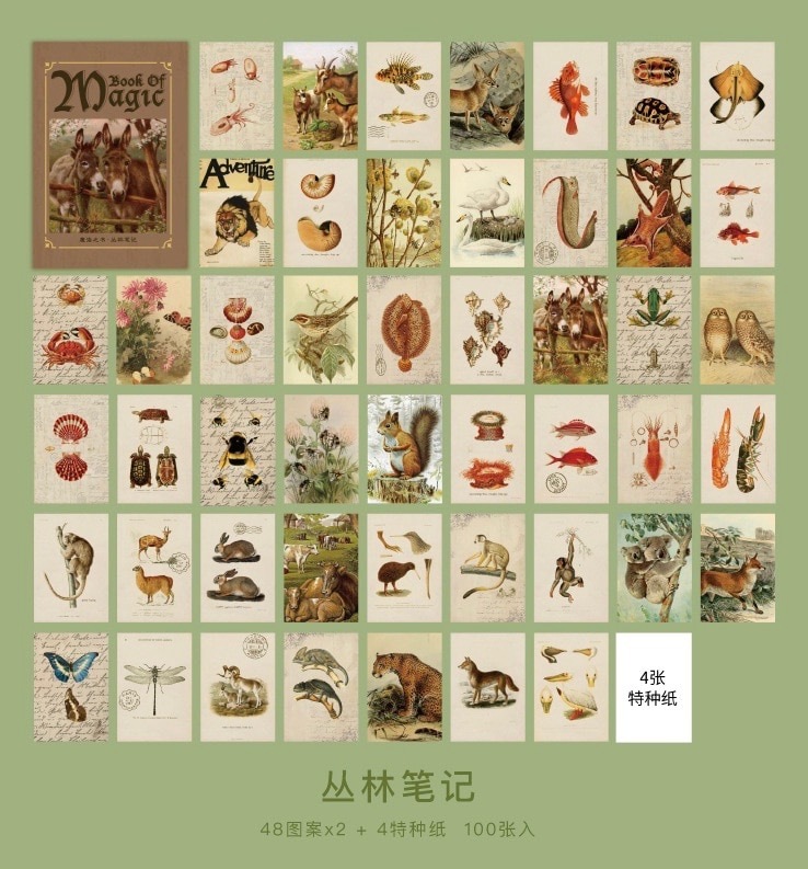 - ◆海外ミニメモブック No20-12 ページ柄違い 手帳・日記に ジャンクジャーナル・素材・コラージュに 動物・植物