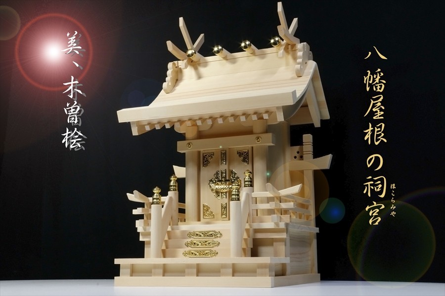 - 神棚 一社 単品 高欄宮 7寸 ■ 美・木曽ひのき 一社 流れ造り 反り屋根 組高欄 特大型神棚