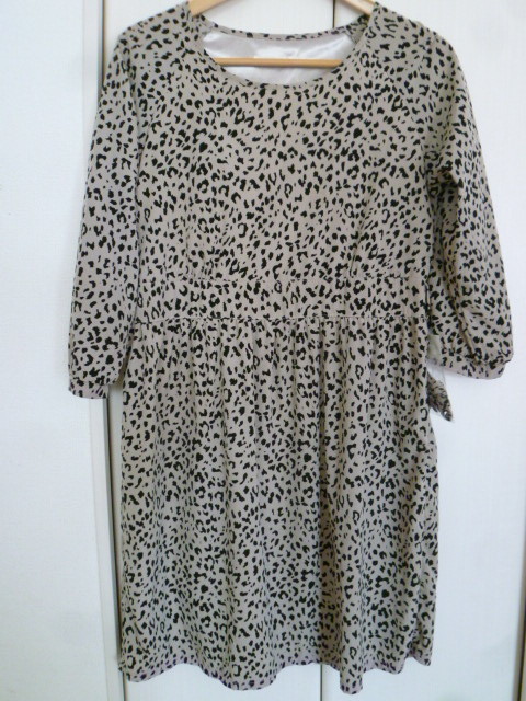 > Alphabet's alphabet/アルファベッツアルファベット△ライトグレーベージュ系ドルメシアンヒョウアニマルウエストリボンワンピースF△BO62