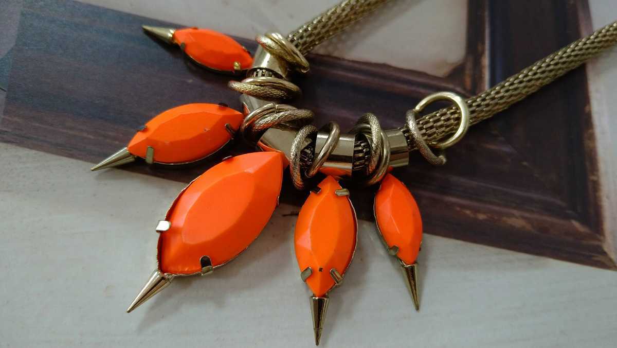 - □個性的な存在感&パンクな印象□蛍光オレンジ色×ゴールドカラー・ネックレス□