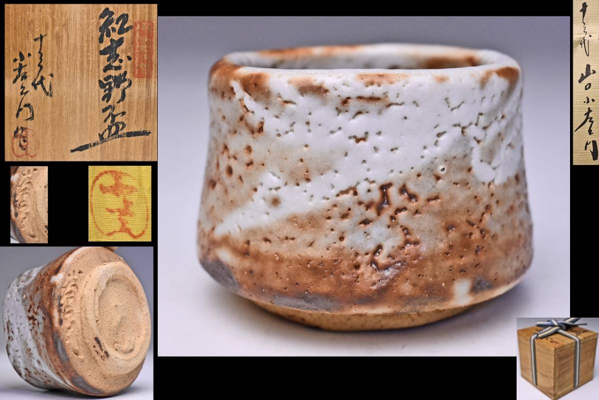 > 山口小左衛門 13代 ★ 紅志野 ぐい呑 ★ 共箱 共布 栞 ★ 歴史ある名窯名工による逸品 ★ 長石釉で鳥の文様が表現された上作 ★ 酒器 ★