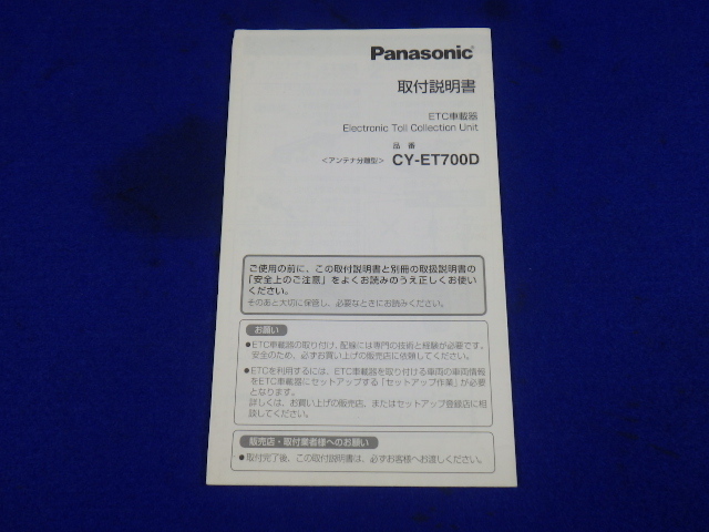 - CY-ET700D パナソニック Panasonic アンテナ分離型 ETC 説明書 取説 取扱説明書 マニュアル 送料210円 中古品