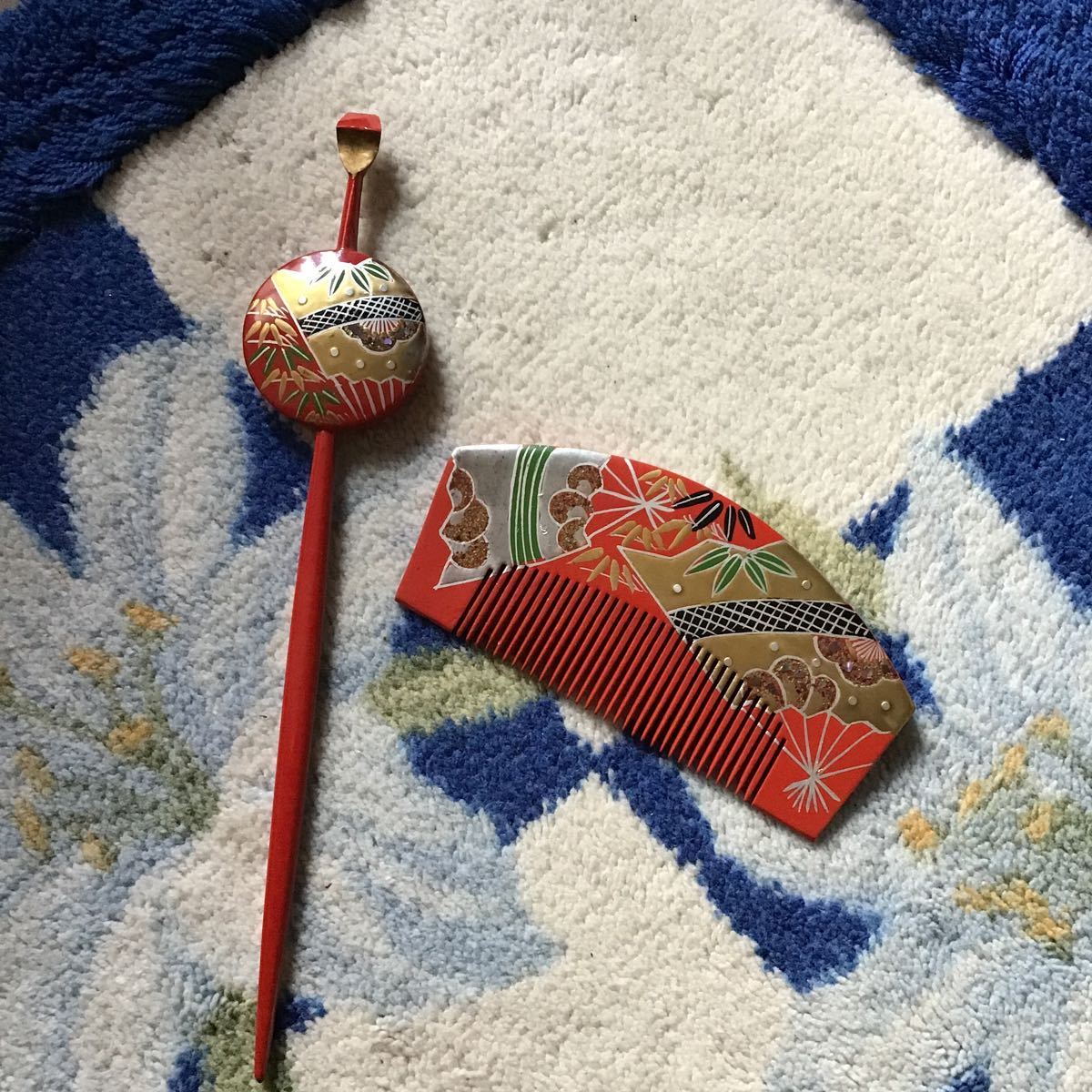 - 手描き蒔絵2点セット♪1時間使用♪定形外140円♪螺鈿木製塗り♪おめでたい松竹梅と扇