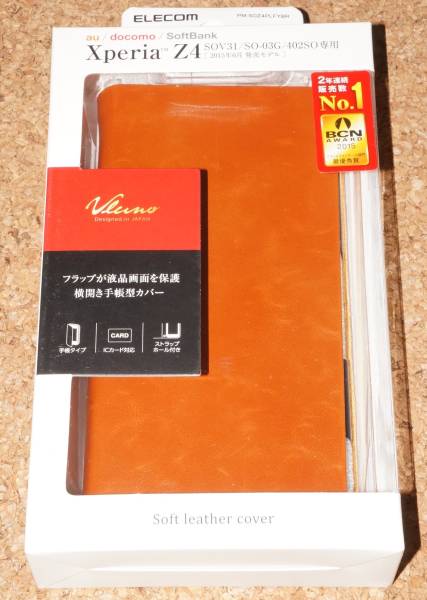 - ☆新品★ELECOM Xperia Z4 レザーカバー 横開き手帳型 ブラウン