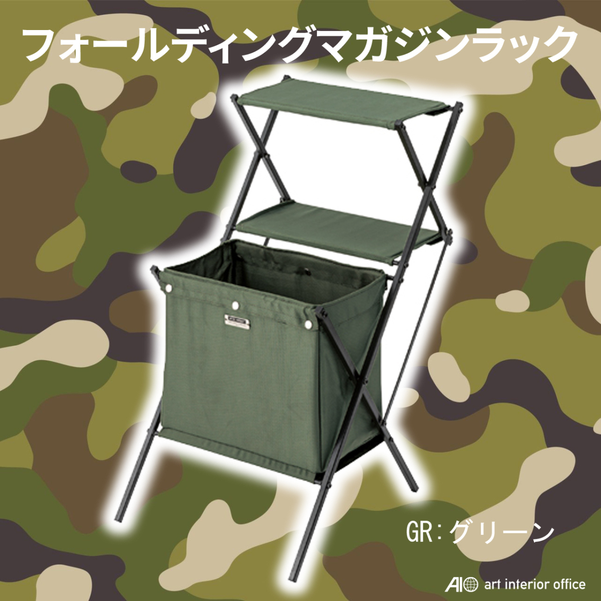- マガジンラック フォールディングマガジンラック グリーン シェルフ 折りたたみ 棚 コンパクト 持ち運び キャンプ アウトドア AZ-MIP-99GR