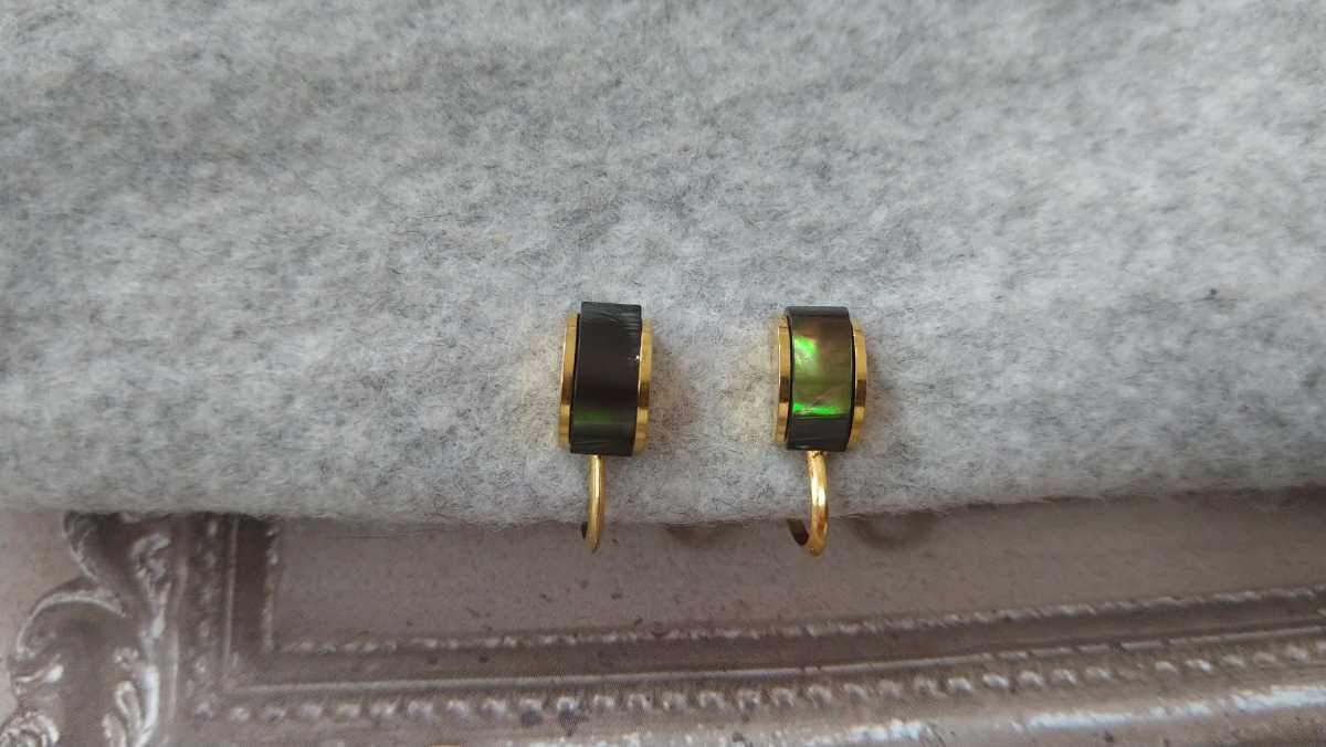 - □かまぼこ型×黒オーロラに光るビジュー・イヤリング□